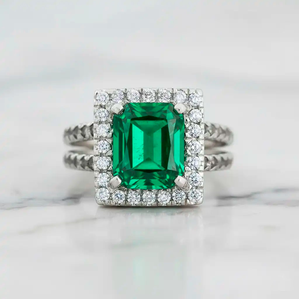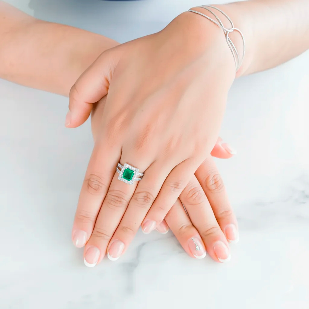 El Anillo Esplendor Real es la joya más lujosa de nuestra colección. Su diseño incluye un majestuso circon central corte esmeralda rodeada por 48 circones corte brillante, creando un resplandor que deslumbra en cualquier ocasión. Ideal para mujeres que buscan la máxima elegancia. Fabricado en plata ley 925